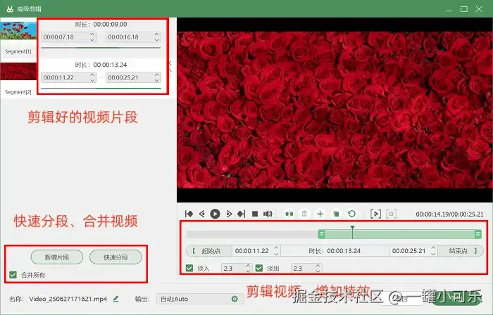 步骤3:录制结束后,我们可以选择进入 “高级剪辑” 页面,这里有软件自带的后期编辑功能,我们可以在这里删除不要的视频片段,给视频加上转场特效等。