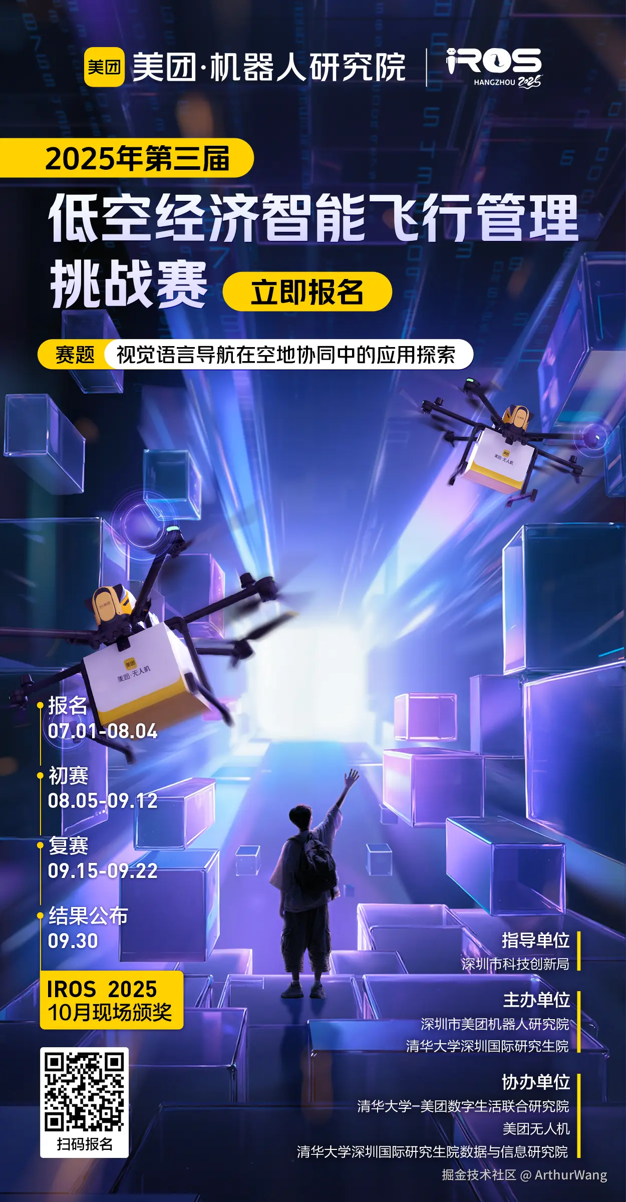 | 了解更多报名信息:相约IROS 2025现场!美团第三届低空经济智能飞行管理挑战赛报名开始