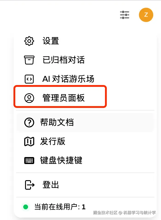 右上角设置 - 管理员面板