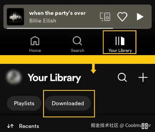 您可以在 Spotify 应用程序的“您的音乐库”部分找到下载的音乐文件。以下是查找下载的 Spotify 音乐文件的步骤: