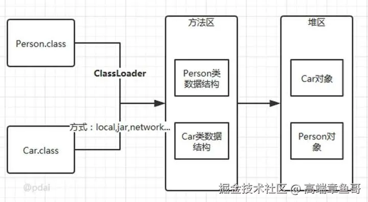 类加载指的是把类加载到 JVM 中。把二进制流存储到内存中,之后经过一番解析、处理转化成可用的 class 类