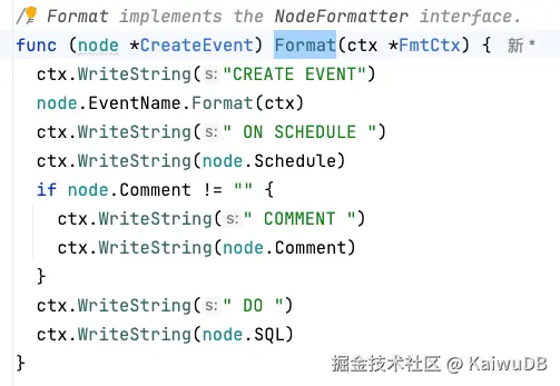 本篇文章以兼容MySQL语法create event为例,简单介绍一下在KWDB中如何去添加一个新的ddl语法。DDL相对于DML语句不需要进行优化,分布式执行,执行流程和添加语法都要相对简单很多,只涉及到上图中的解析器、编译器、执行器部分。