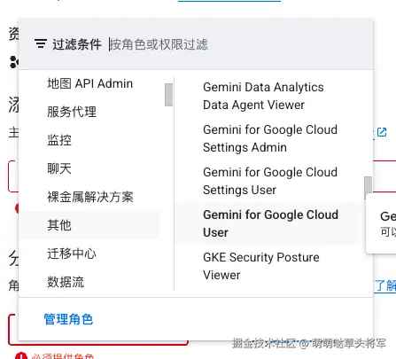 注意 Gemini for Google Cloud User 在其他选项里: