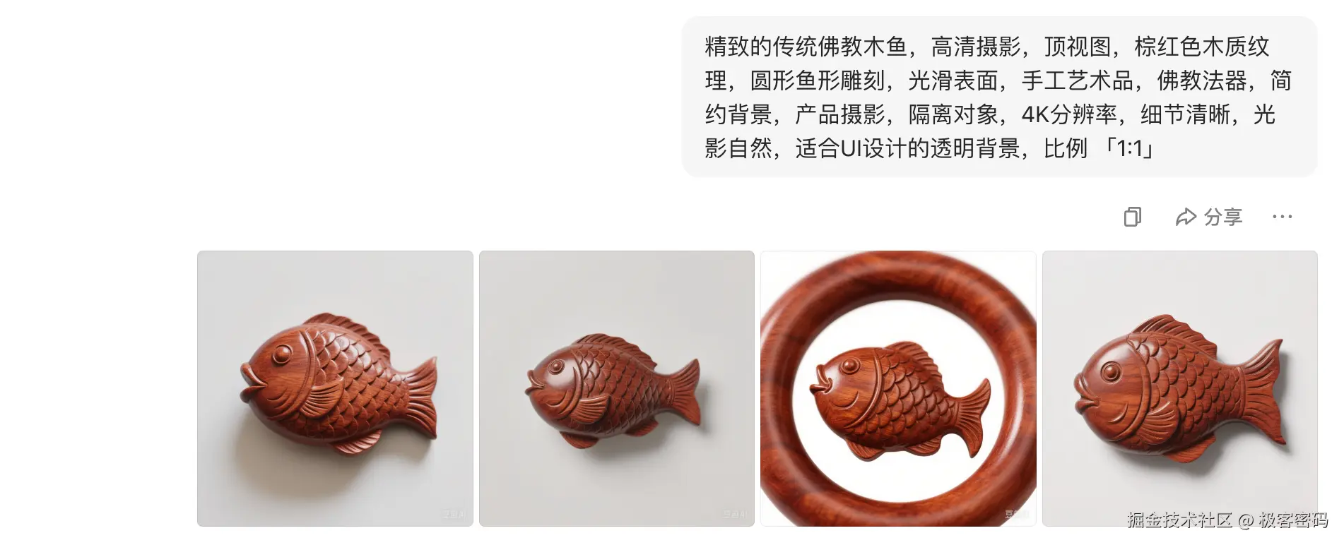 最开始,我尝试用提示词直接生成木鱼皮肤素材