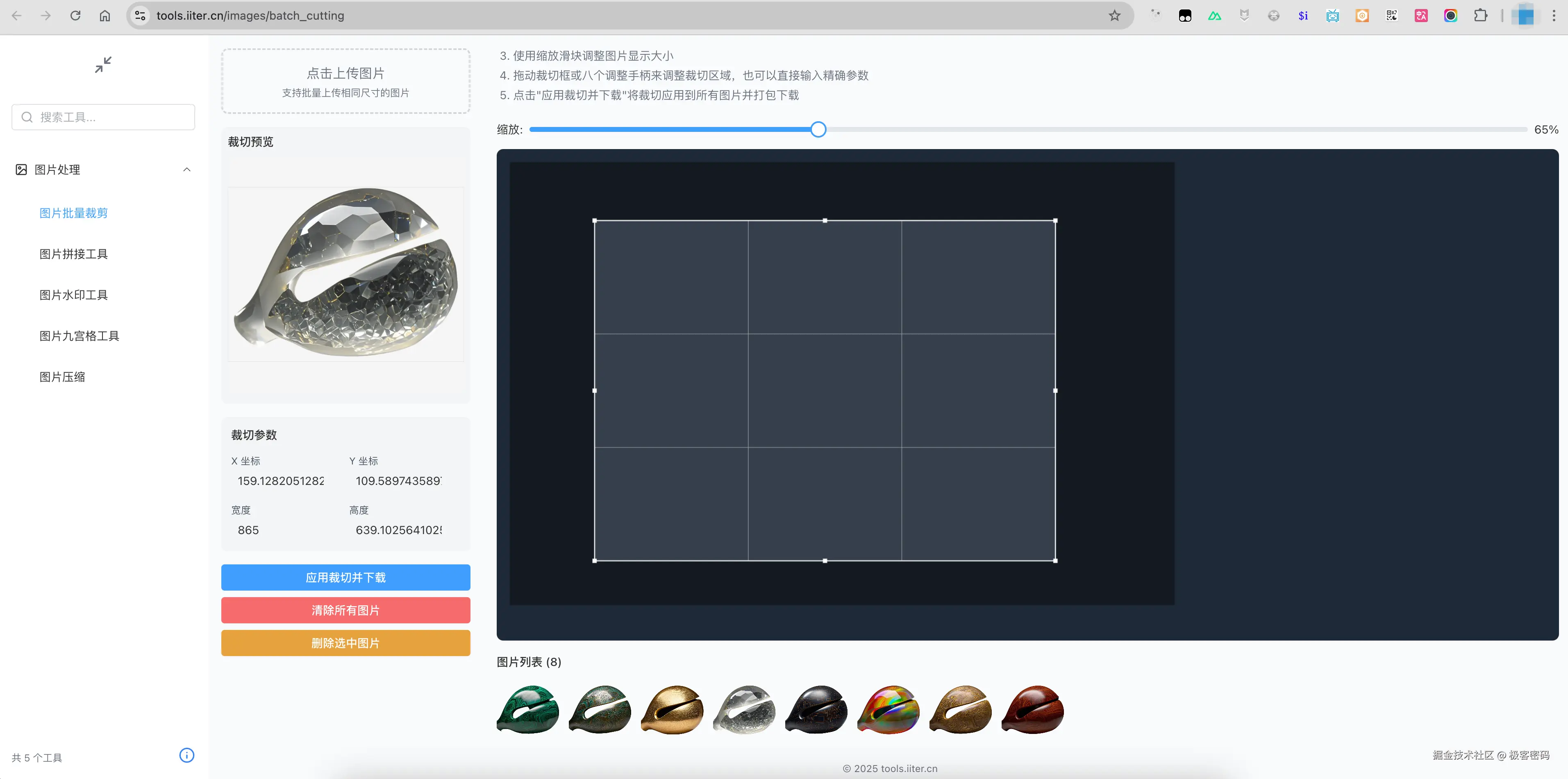 不如做个批量裁剪,把主体裁出来,右下角的水印不就自然消失了?
