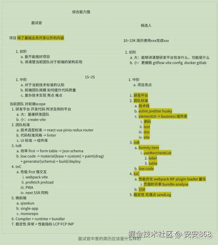 不要通篇都是加粗字体,只针对核⼼字体加粗标识即可,不然会导致虚焦,容易让⾯试官抓不住重点;