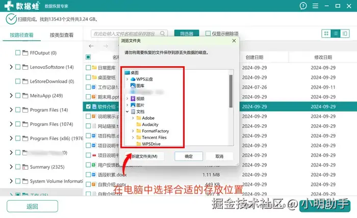 步骤3: 最后还需要在“浏览文件夹”的弹窗中找到合适存放导出文件的位置。