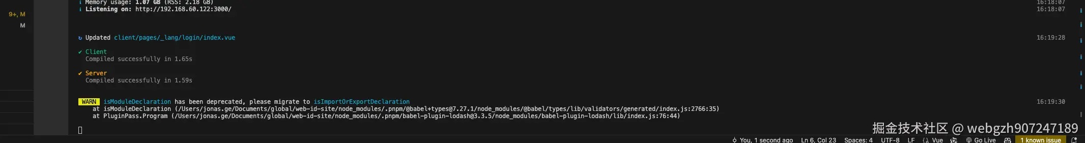 - 热更新: 大概 1.5s 左右 (不同型号电脑速度不一样,这里测试是 M2)