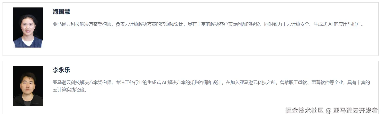 *前述特定亚马逊云科技生成式人工智能相关的服务仅在亚马逊云科技海外区域可用,亚马逊云科技中国仅为帮助您了解行业前沿技术和发展海外业务选择推介该服务。