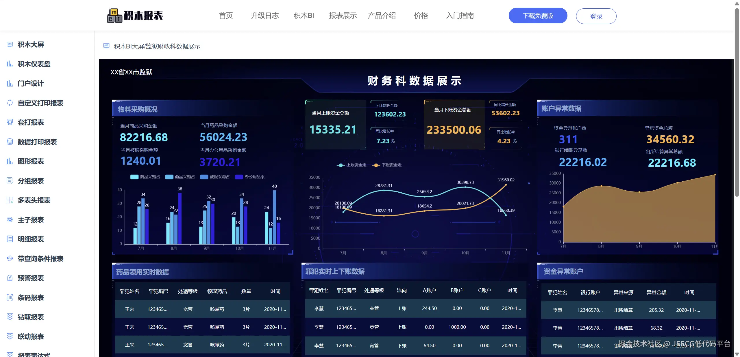 - 特点:灵活的报表设计,支持在线可视化设计,适合开发者和技术团队使用,商业版为企业用户提供专门的版本和技术支持。