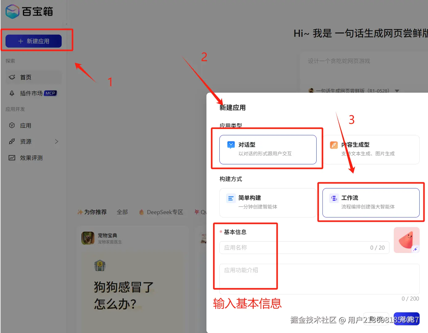应用类型:选择"对话型"
