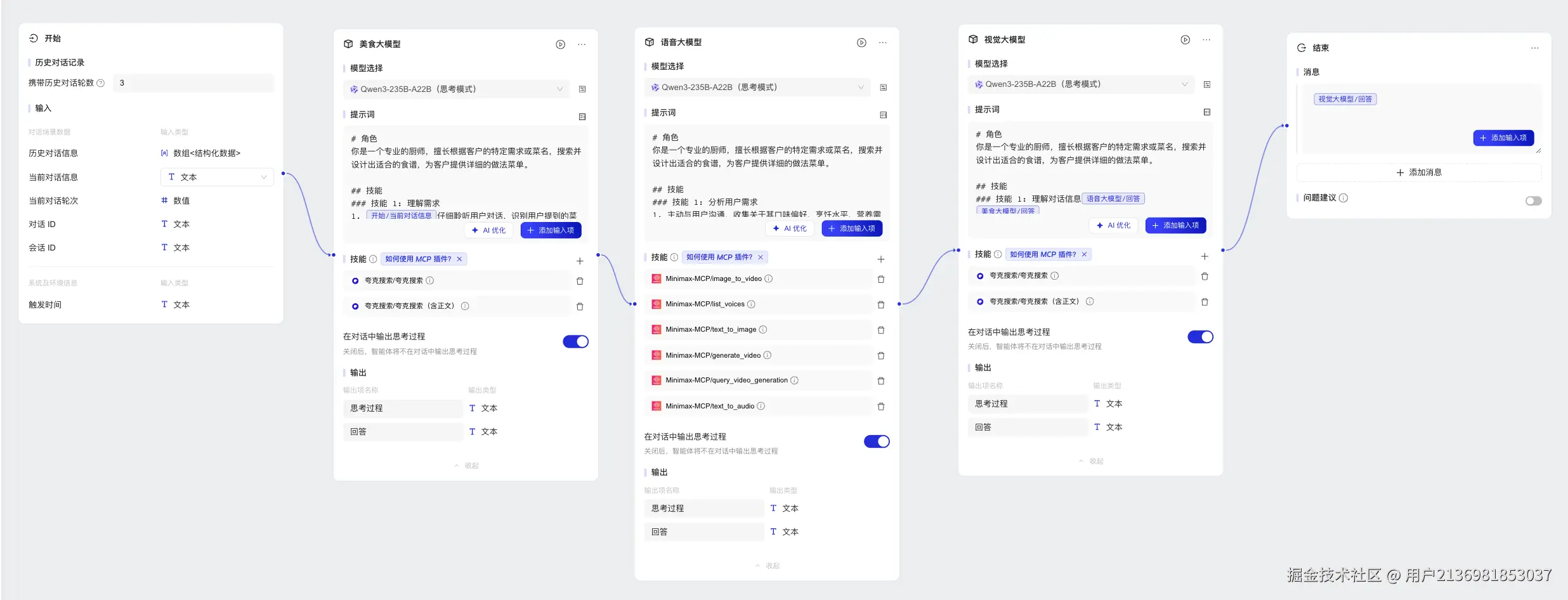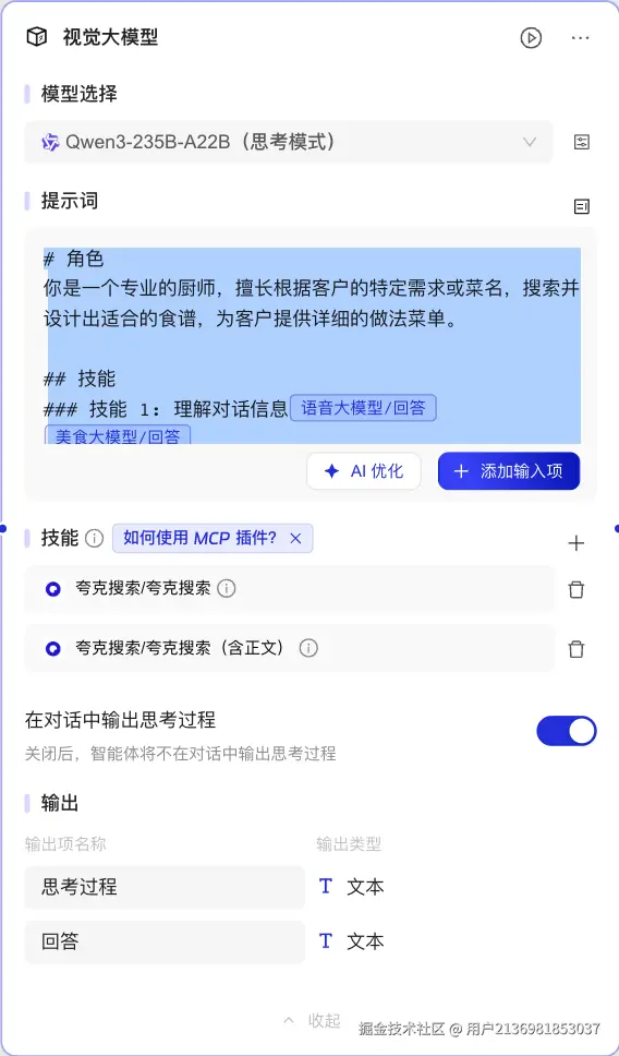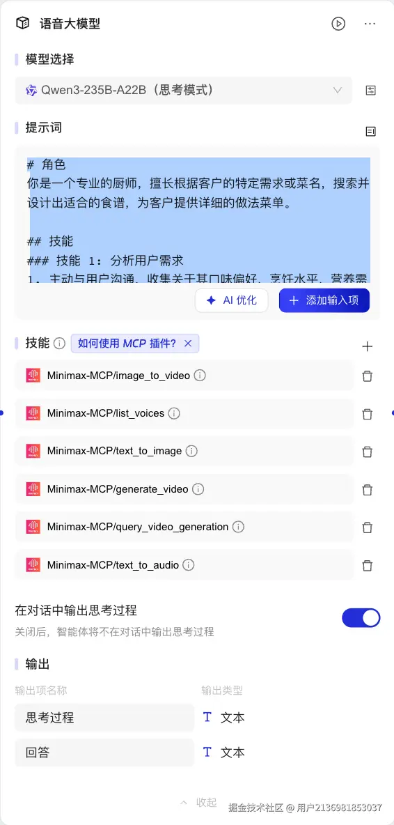 在本次「美食侦探」智能体的开发实践中,我们成功打造了一个基于多模态技术的美食推荐与教学解决方案。通过系统化的搭建过程,我们积累了许多宝贵的经验和技巧。整体来看,部署和搭建侦探阿Q智能体的操作其实并不复杂,真正的挑战在于提示词的优化以及MCP(多模态内容处理)模块的配置,这一环节中会遇到各种各样的问题,仅是调优和解决异常就花费了超过三个小时。这里特别需要提醒的是,在使用 minimax mcp 时,它有可能返回一个示例链接,而不是真正调用生成内容。最后,对于 MCP Server 的配置以及调用流程其实相对简单,但如果直接在页面调用 MCP Server,常常会碰到多种异常情况,正常情况下,还是通过传统的 API 方式来调用会更加稳定和高效。然而,在美食对话界面中,当配置好 MCP Server 后,就能通过自然语言轻松调用不同的内容处理服务,比如我们只需对侦探阿Q说「红烧牛肉面怎么做?」或者「我是少数民族,想吃羊排,教我做」,它都能迅速响应并生成对应的结果,真正做到美味的做法即时呈现,贴心又高效。
