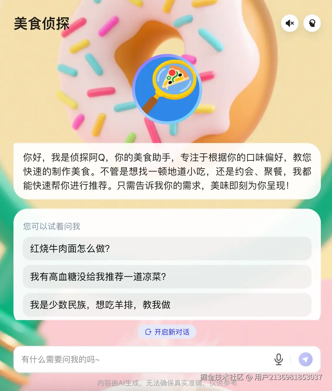 - 回答内容结合语音大模型和美食大模型。