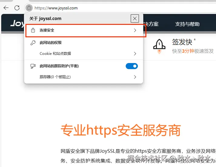 三、连接安全旁边有个证书图标,点击后就能看到证书信息,选择详细信息
