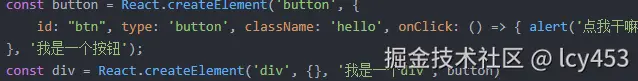 // const button = React.createElement('button', {}, '为啥一个按钮')
