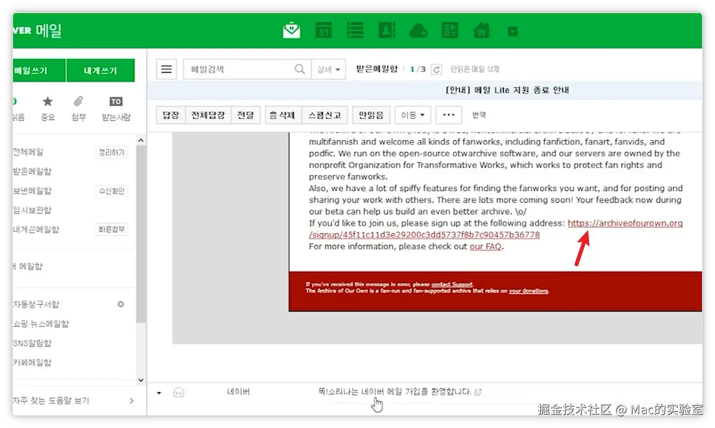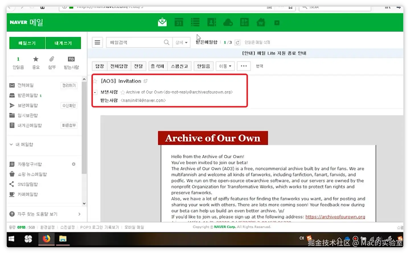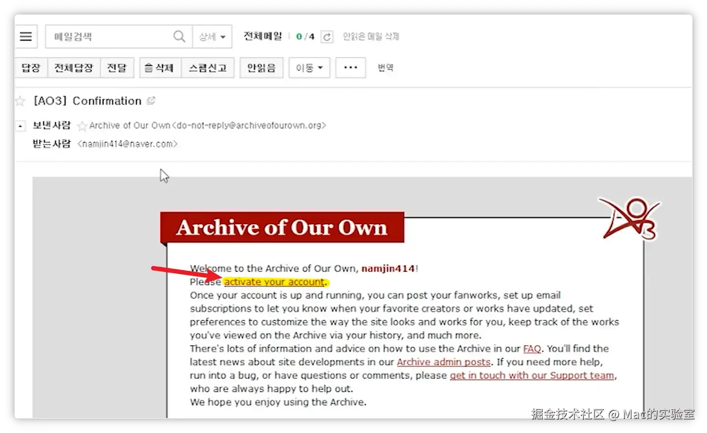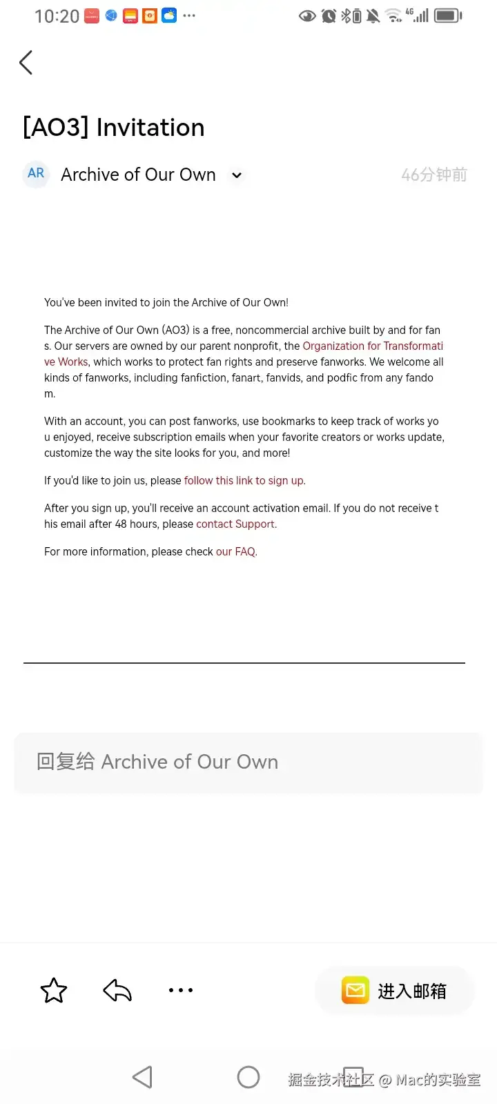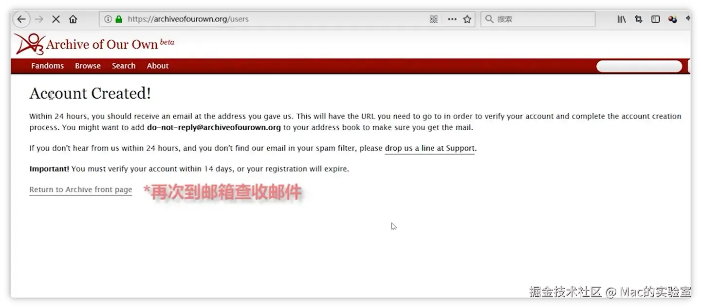 三、接收AO3的官方邮件邀请,激活邀请邮件注册账号,填写注册信息