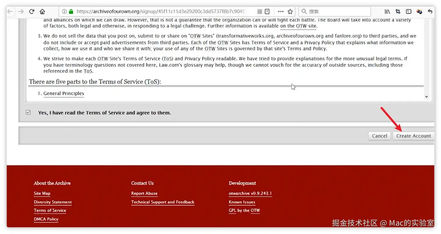 拉到底部,记得勾选同意协议,然后才是点击【Create Account】创建账号