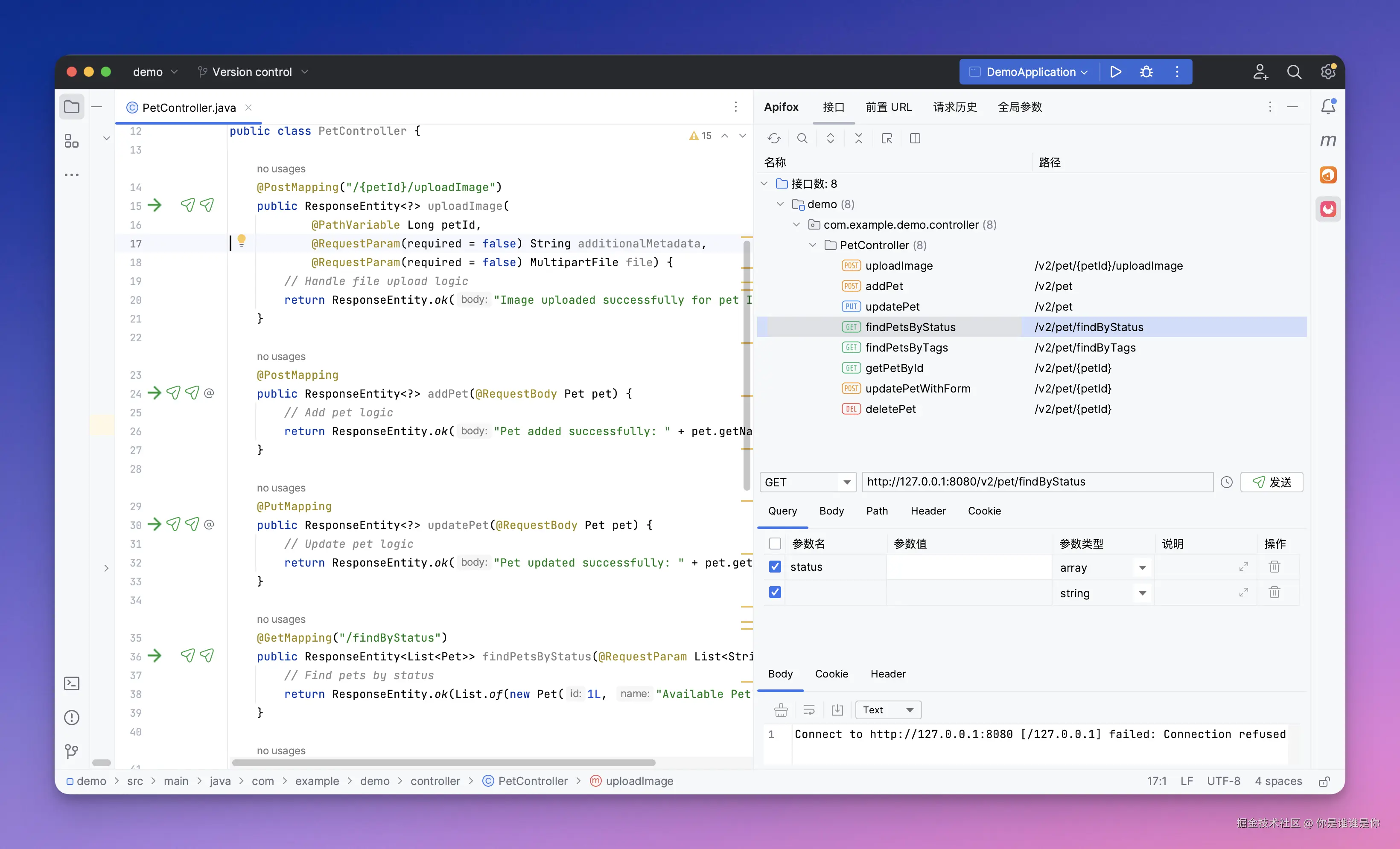 Apifox:提供 IntelliJ IDEA 插件,方便开发者在代码环境中快速查看和调用 API 或测试信息,提高工作流闭环效率。