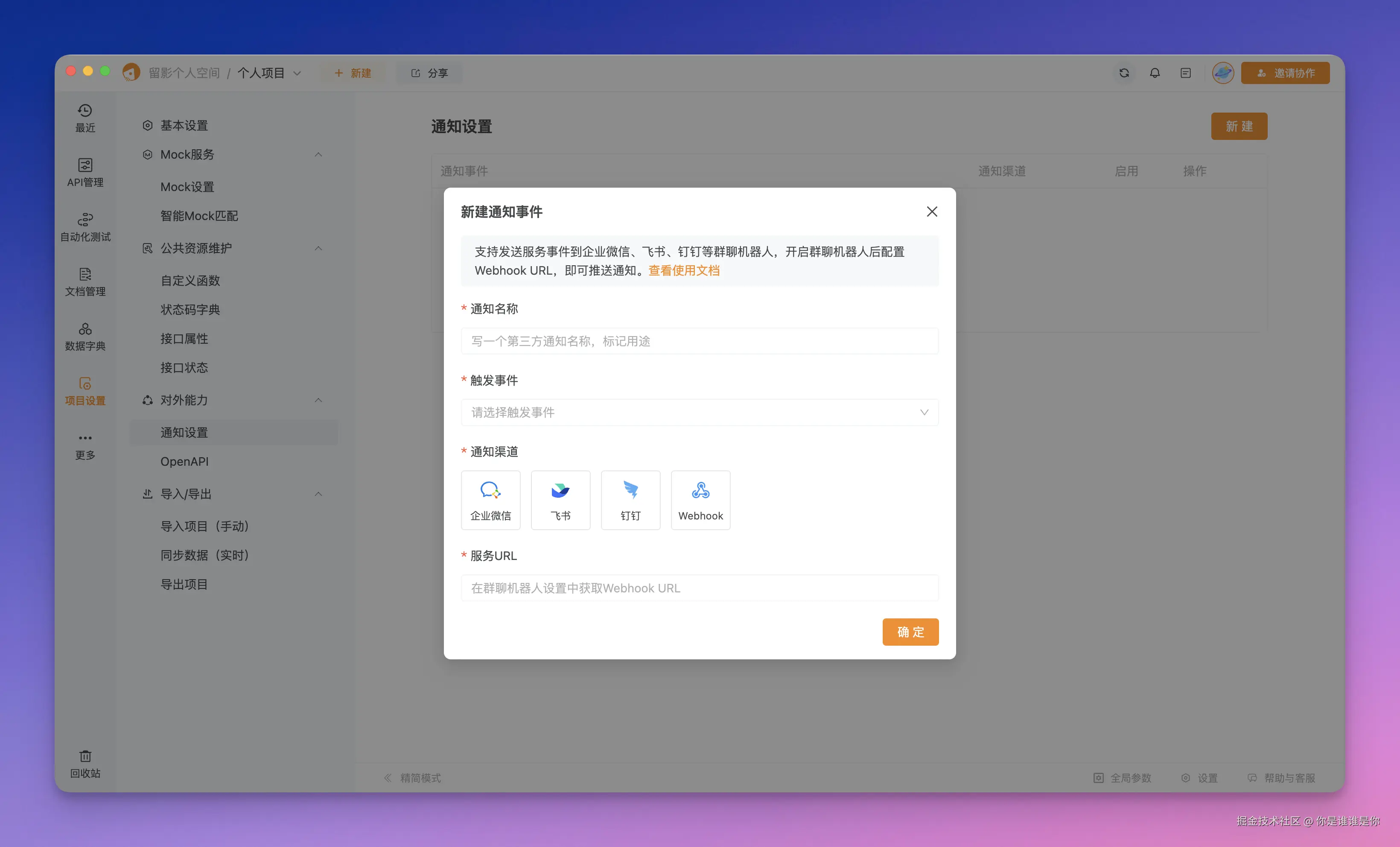 Apifox:支持上下文评论功能,可以在 API 文档中直接 @ 提及成员并指派任务。系统还支持集成多种通知渠道,如钉钉、企业微信、邮件等,实现即时通知。所有评论和任务指派内容可以追溯,保证信息传递的透明与高效。