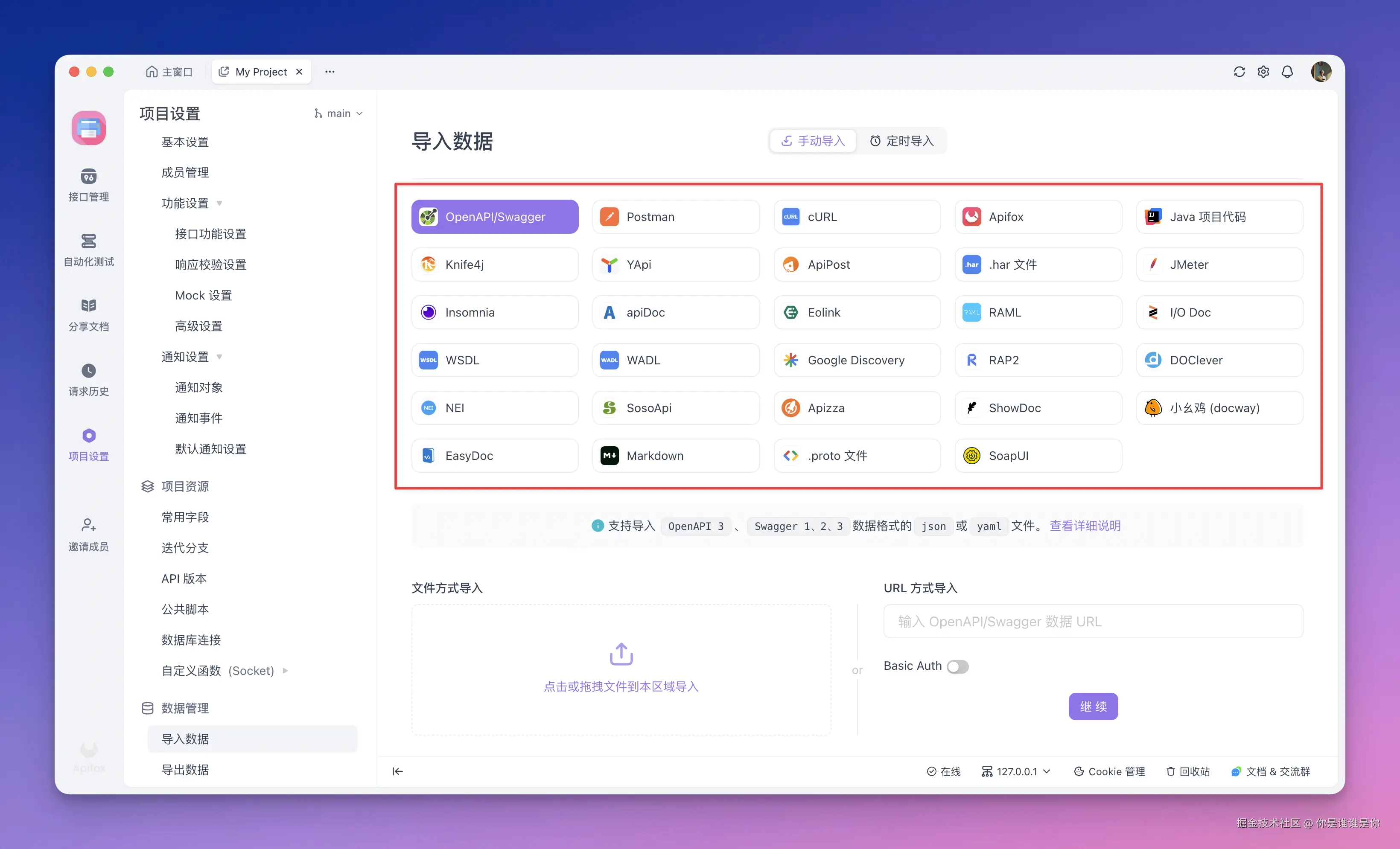 Apipost:也支持主流格式(如 Postman、Swagger)的导入导出功能,可满足大多数开发调试需求,但在边缘格式、版本兼容性等方面尚有提升空间。