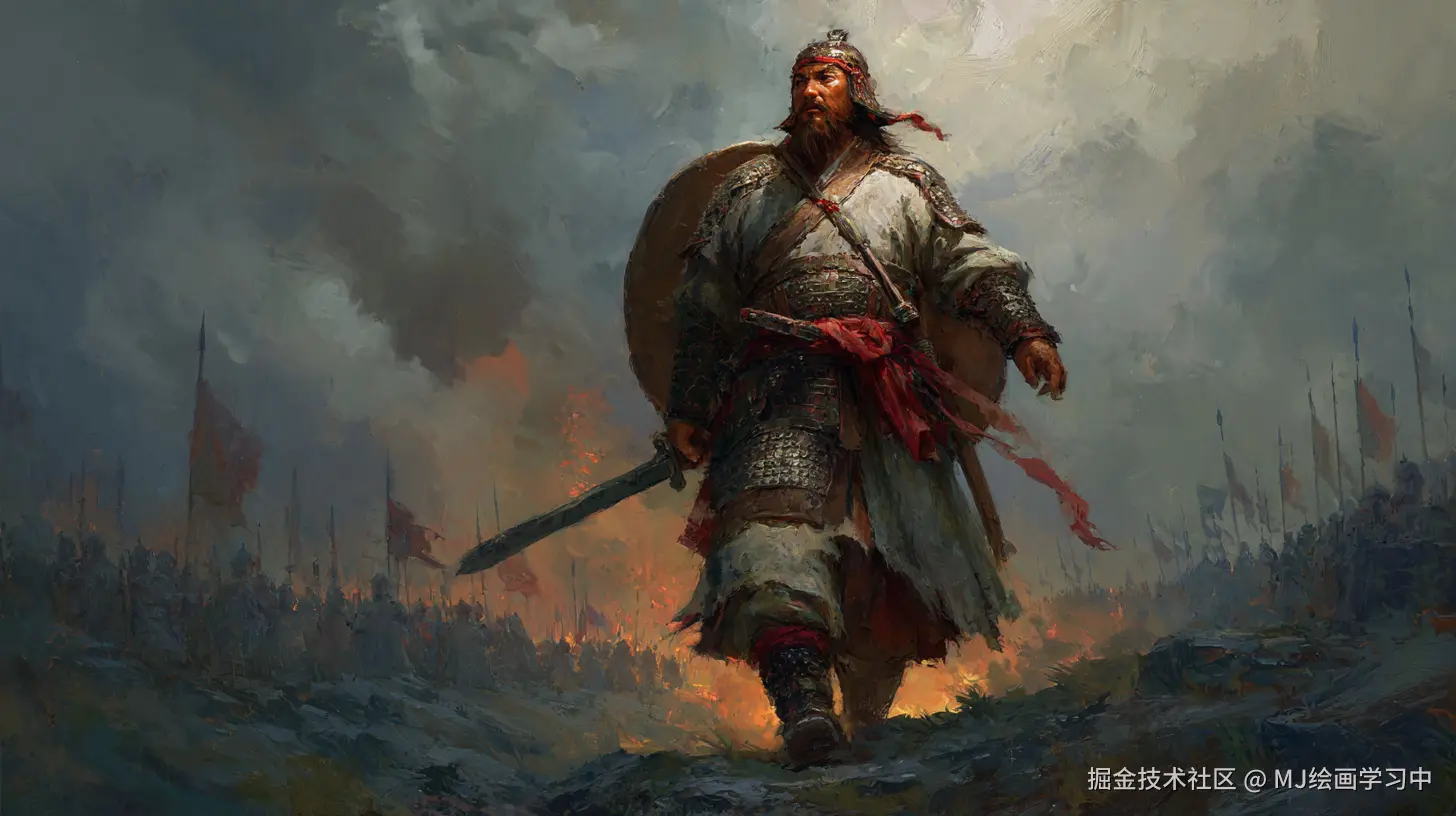 - 水墨晕染+油画质感(中西结合表现史诗感)