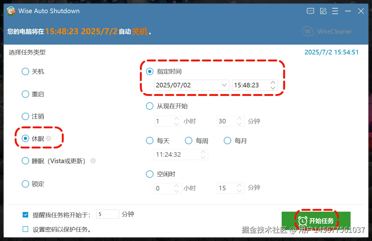 以设置“定时休眠”为例,你只需选择任务类型为“休眠”,设定目标时间,然后点击【开始任务】,即可轻松启动倒计时任务。