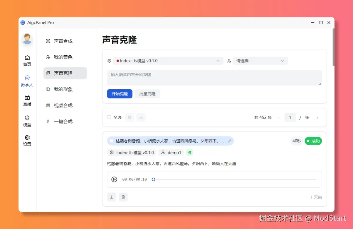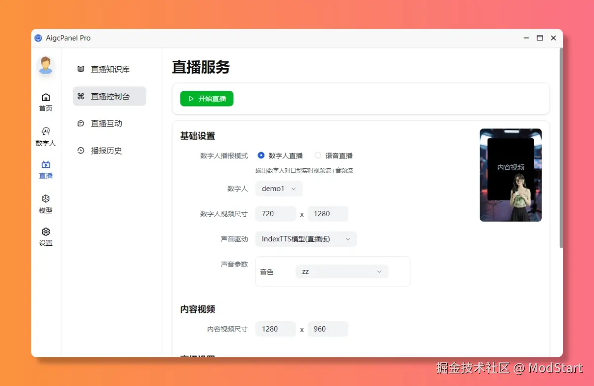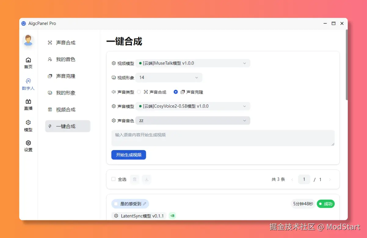 AigcPanel是一个简单易用的一站式AI数字人系统,小白也可使用。 支持智能直播、视频合成、声音合成、声音克隆,简化本地模型管理、一键导入和使用AI模型。