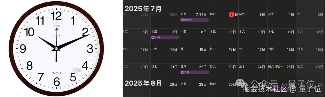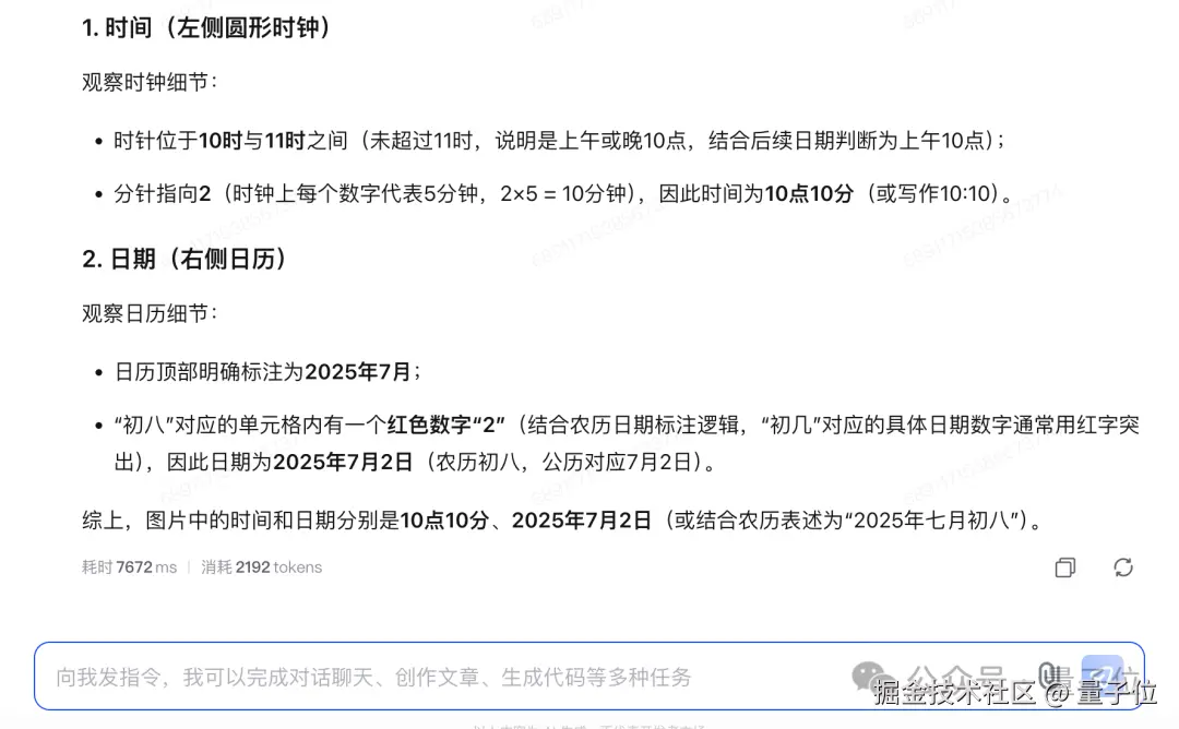 再如此前同样让一众大模型 “头疼” 的看时钟和日期问题,我们也让 GLM-4.1V-9B-Thinking 试一试: