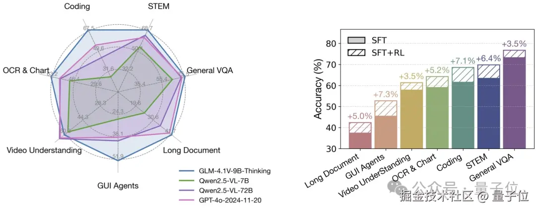 整体来看,GLM-4.1V-9B-Thinking 之所以能够这般 “以小搏大”,核心原因就是会思考: