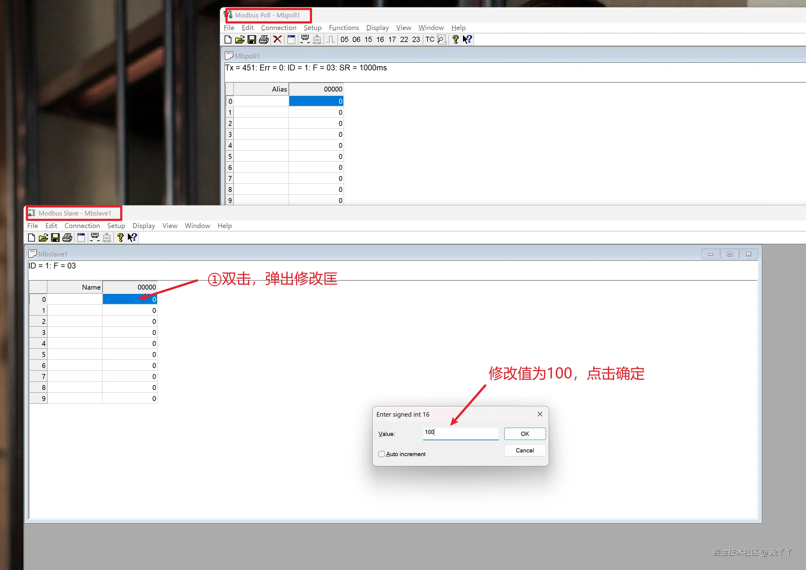2.3.3.1、模拟从站值同步(刚刚说了从站是不会主动发送数据的,这里因为是软件的原因,修改了值,主站也会同步修改,生产环境还是需要主站主动去轮询)