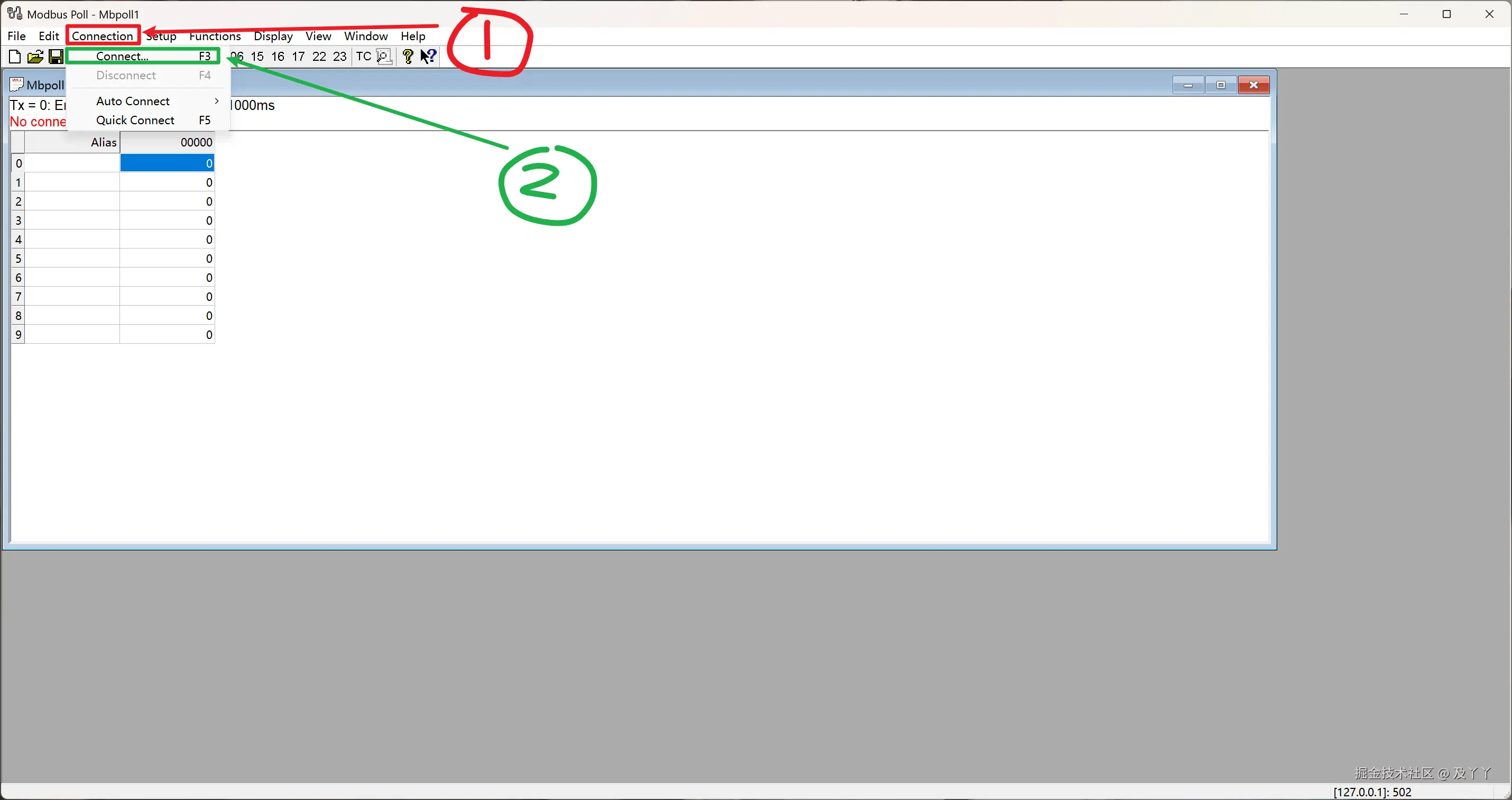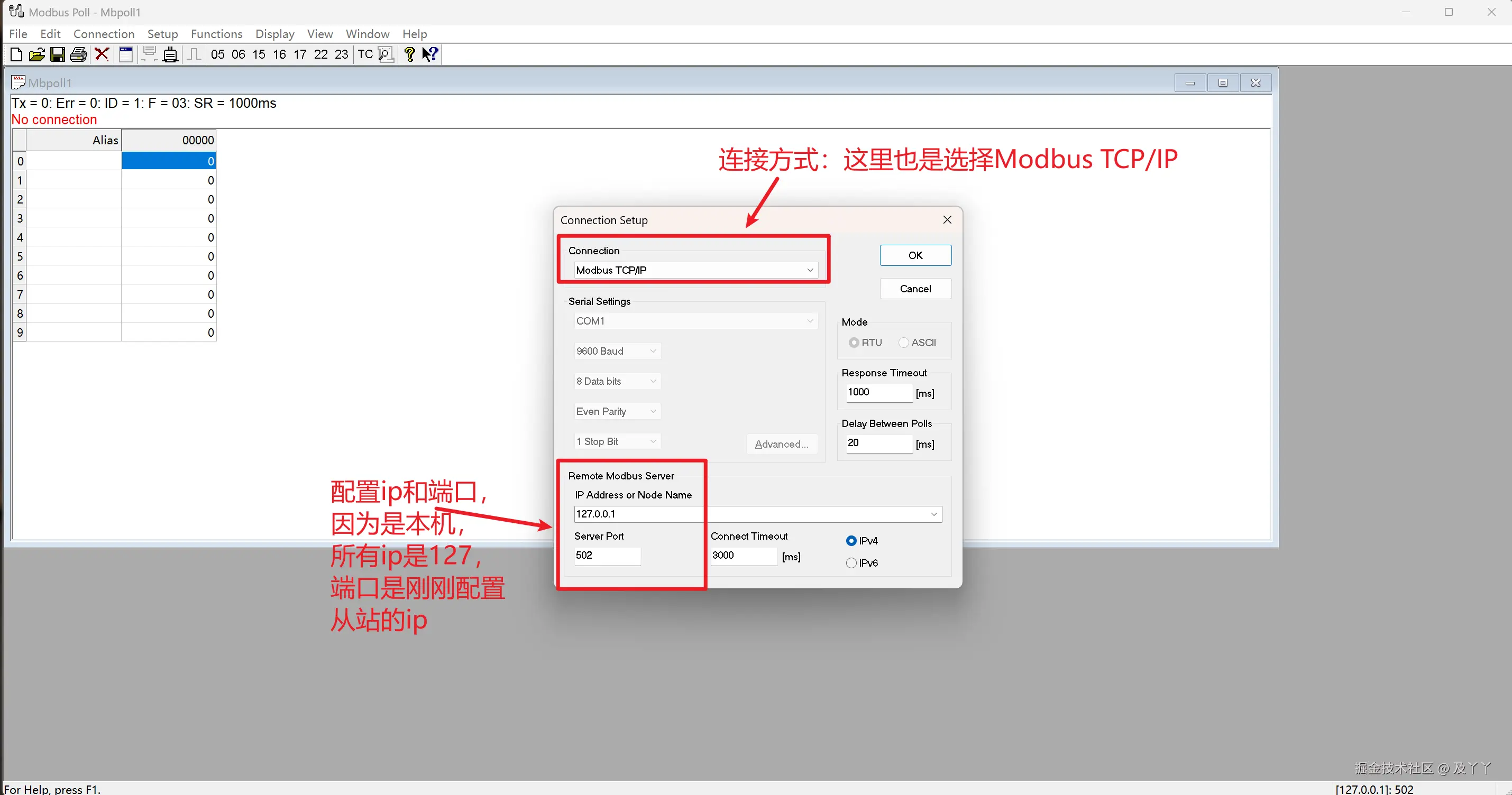 2.3.2.1、开Modbus Poll,创建连接