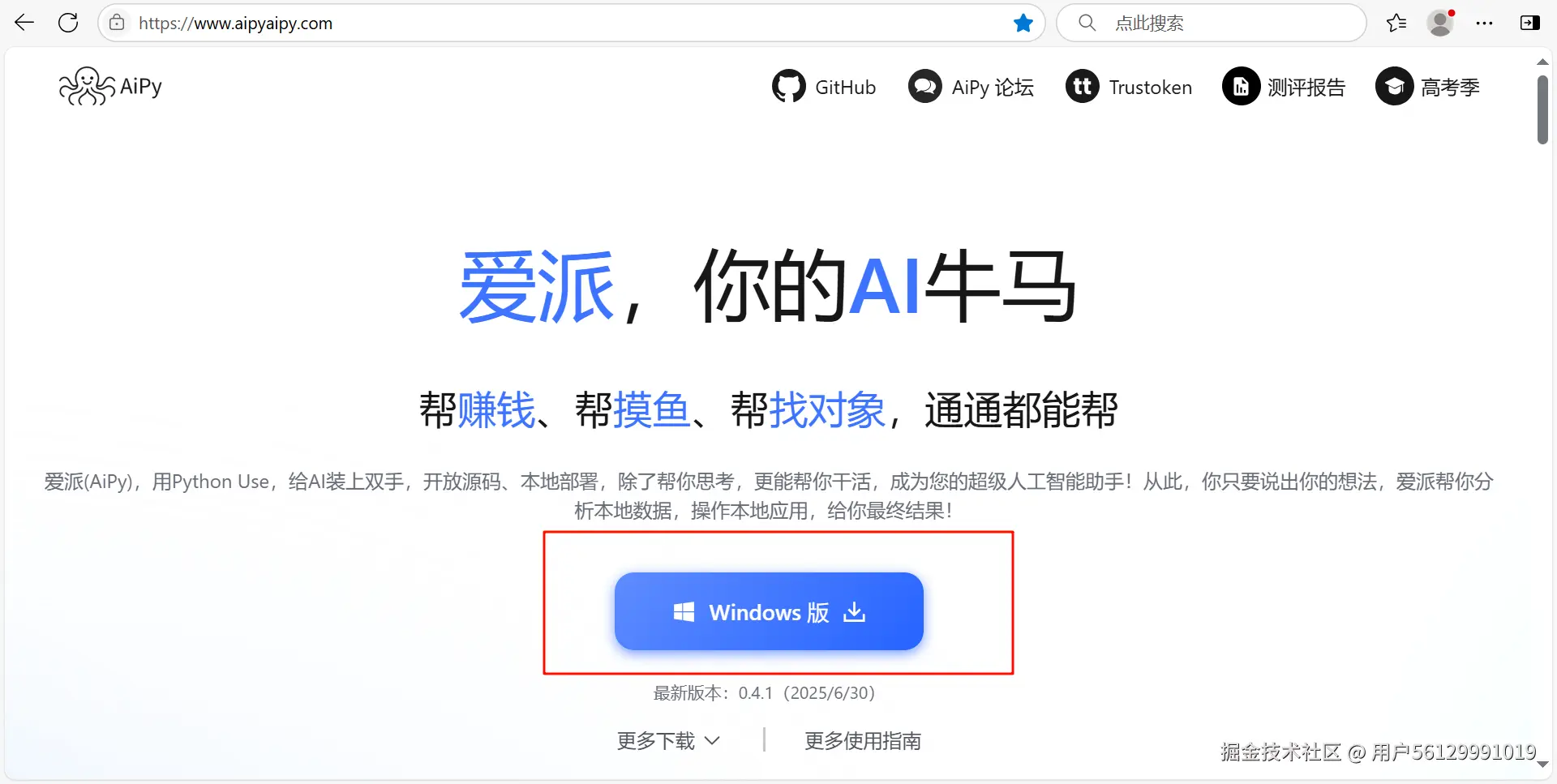 浏览器搜「Aipy 官网」,点击 “立即下载”
