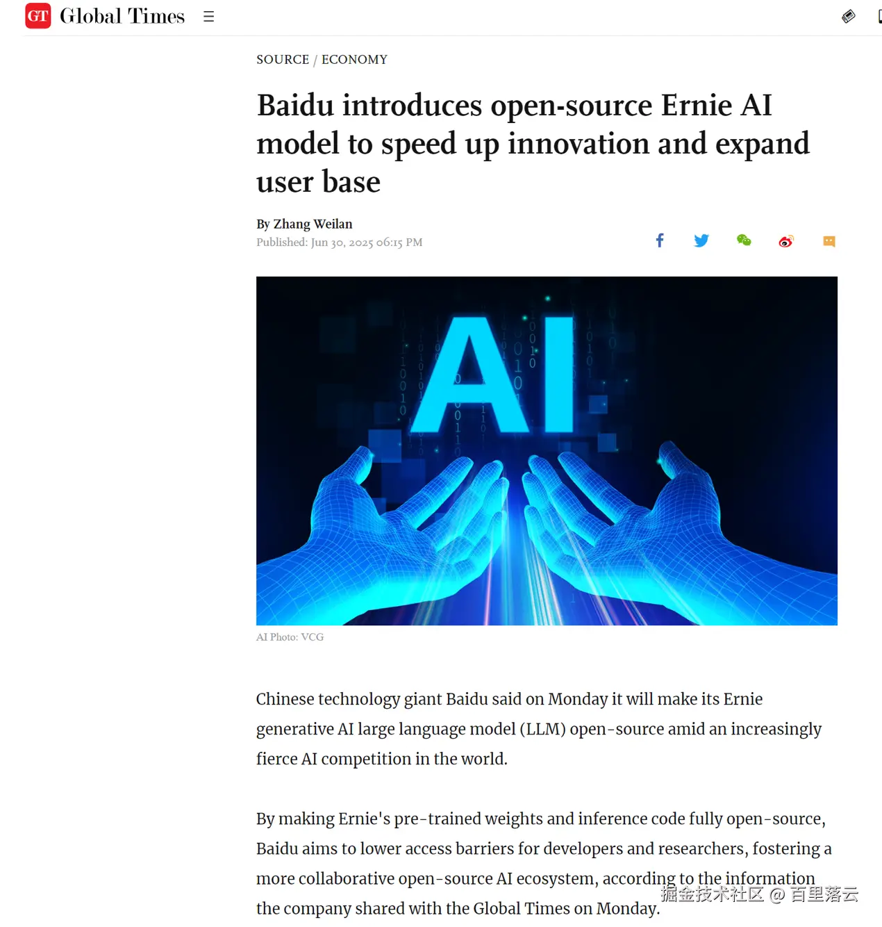 百度文心 4.5 系列开源的消息一经发布,立刻引发了海外媒体的广泛关注。CNBC 等知名媒体纷纷报道,称百度开源文心 4.5 系列模型将巩固中国在人工智能领域的领导者地位。报道中指出,百度这一举措不仅是其自身技术实力的展示,更预示着中国在 AI 领域的崛起和发展潜力。与之形成鲜明对比的是,此前海外在 AI 开源领域的主导地位受到了前所未有的挑战。百度的开源行动,让世界看到了中国 AI 企业的雄心壮志和强大实力。