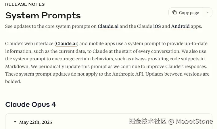 Anthropic公司最近公布了Claude 4模型的系统提示文本。