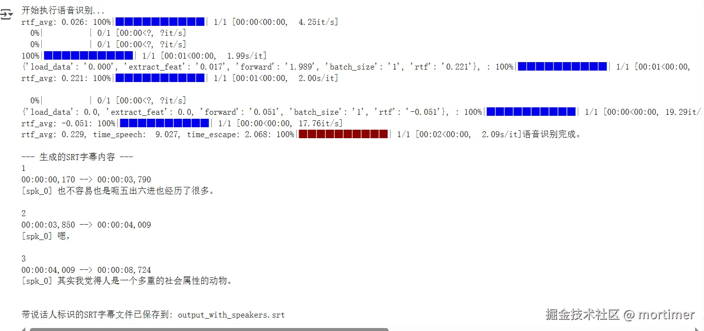 目标很明确:输入一段多人对话的音频,输出带有 [spk_0], [spk_1] 这类说话人标记的SRT字幕。