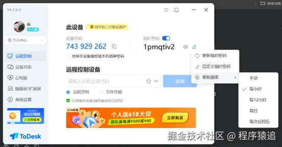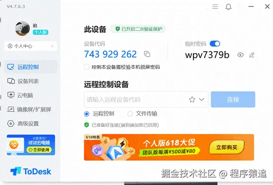 ToDesk在这方面做得最到位,每次有人连你的电脑,手机和电脑会同时提醒,还能微信通知,告诉你谁在敲门(显示对方设备名和位置),连什么时候进来、什么时候走的都记得清清楚楚。