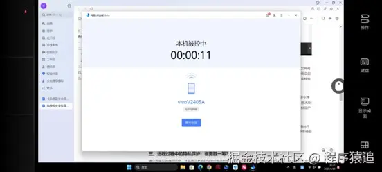 4、开启后,被控设备显示屏上就会显示下方画面,不会暴露您的隐私,保证您的操作安全。