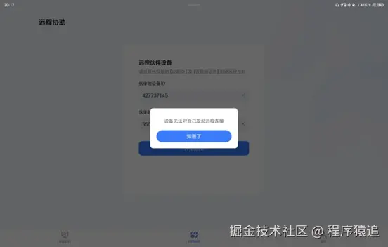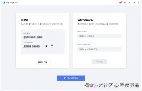 而且单看界面是找不到入口的,只有点击底部的【远程协助】才看到本设备和填入远程伙伴设备。uu这种简约设计虽然降低了用户学习成本,也使得它在安全功能上缺少更细致的权限控制选项。