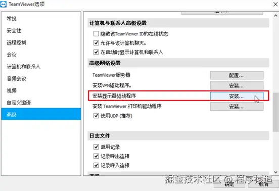 前提是要安装 TeamViewer监视器驱动程序。点击 其他 ➜ 选项 ➜ 高级 ➜ 显示高级选项 ➜ 高级网络设置 ➜ 安装监视器驱动程序 ➜ 点击安装。