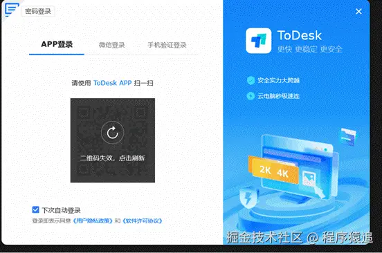 ToDesk 的登录方式很灵活,可以用手机号+验证码、邮箱、微信或者直接通过APP登录,基本上你想怎么登都行。而且它安全性很高,如果发现登录有风险(比如异地登录),就会让你多验证一步,比如既要输密码又要收短信验证码,或者用微信扫码确认,这样别人就很难盗号,确保只有你本人能登录。简单说就是:登录方便,安全有保障。