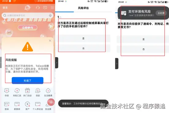 更贴心的是,如果用投屏模式时不小心点到支付页面,ToDesk会马上弹出警告,就像有个安全员在旁边大喊:"注意!现在很危险!"还得出几道安全知识题考考你,答对了才能继续。这招绝了,既提醒了用户,又把安全意识薄弱的人给拦住了。