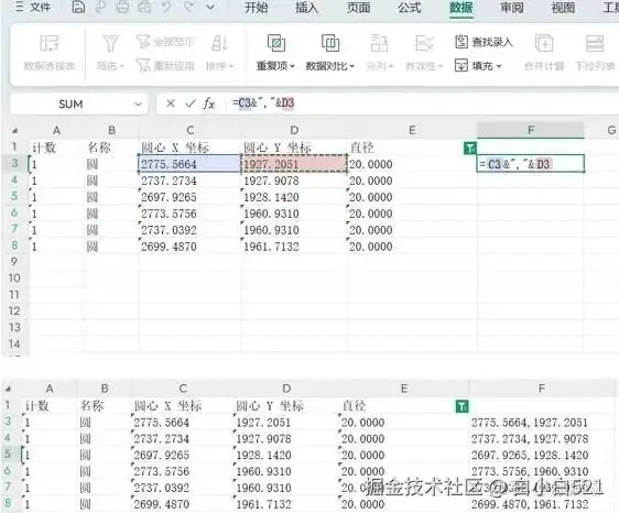 在EXCEL中筛选出需要的对象,将单元格处理成X,Y坐标。