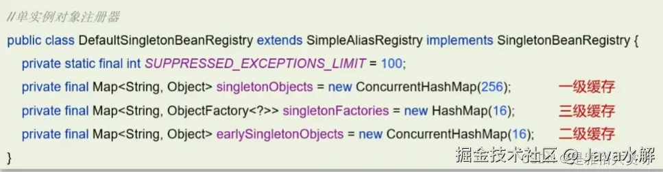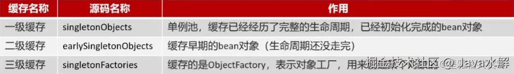 Spring解决循环依赖是通过三级缓存,对应的三级缓存如图所示: