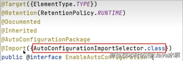 其中最重要的是@EnableAutoConfiguration,进入这个注解会发现内部结构是这样的: