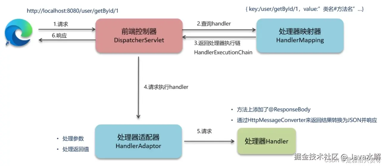 5、HandlerAdapter经过适配调用具体的处理器(Handler/Controller)。