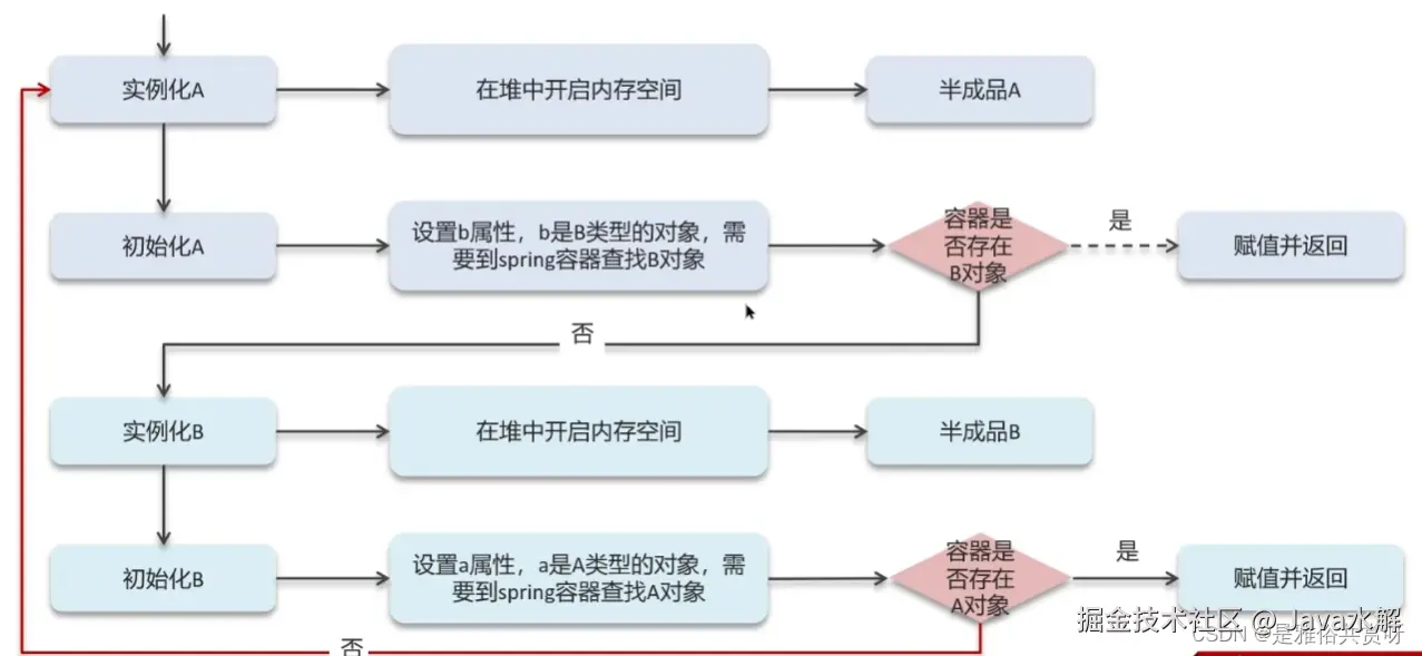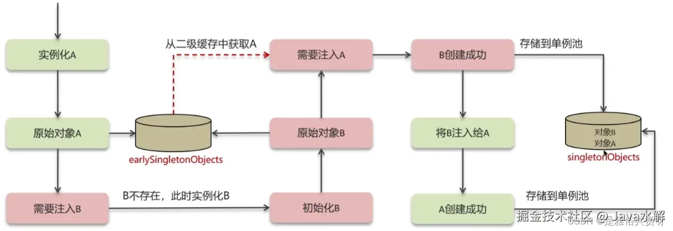 三级缓存解决循环依赖的流程: