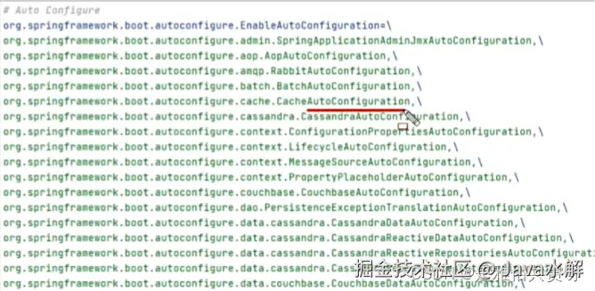 该注解通过@Import注解导入对应的配置选择器。关键的是内部就是读取了 该项目和该项目引用的Jar包的的classpath路径下META INF/spring.factories文件中的所配置的类的全类名。