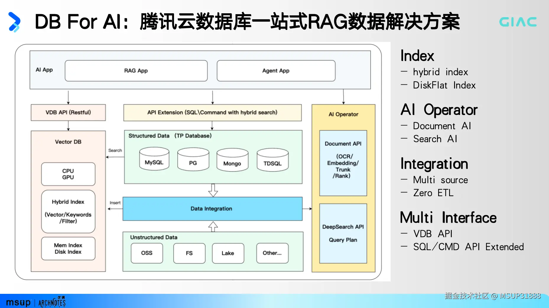 本文内容节选自6月13日,由msup和高可用架构联合主办的GIAC全球互联网架构大会,腾讯云向量数据库高级产品经理熊鑫分享的《腾讯云向量数据库助力大模型激活企业数据价值》案例实录。
