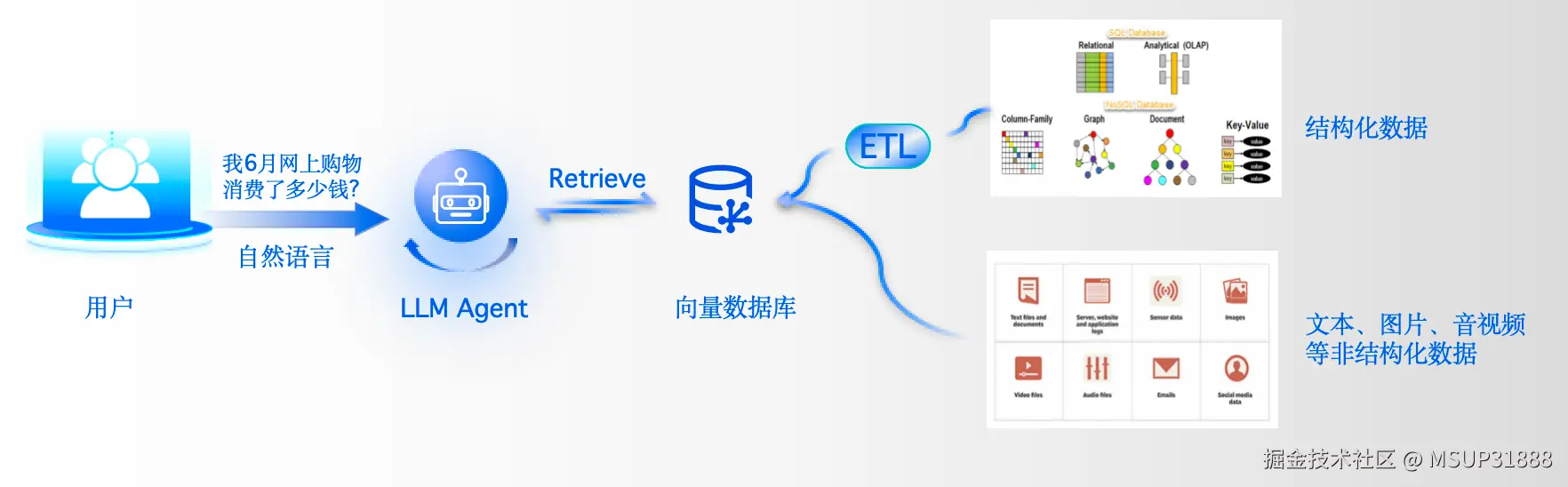传统上,企业依赖结构化数据(存储在关系型数据库如TDSQL-C中)构建业务。而非结构化数据则多存储于对象存储等介质。结构化数据具有逻辑关系,易于查询;非结构化数据则形态多样,蕴含丰富信息但难以直接利用。