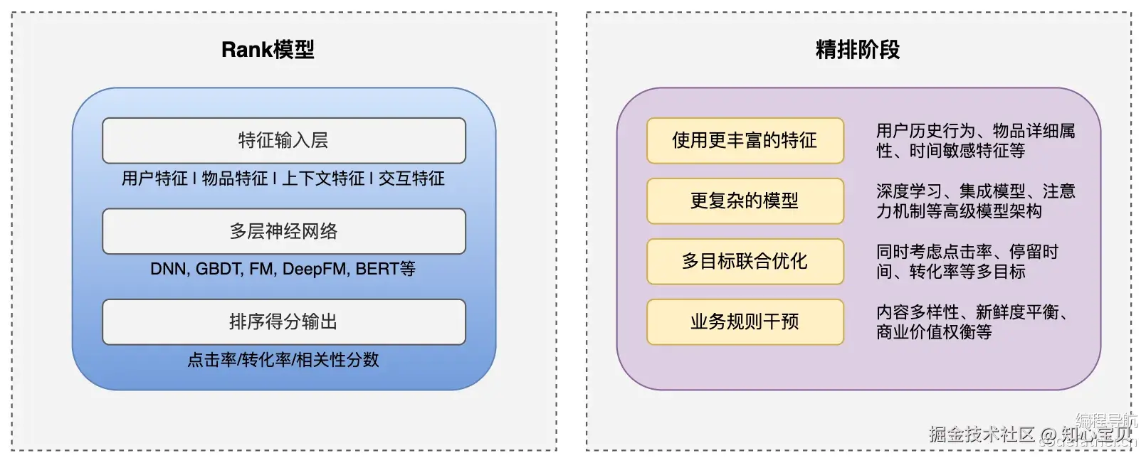 Rank 模型(排序模型) 负责对召回阶段筛选出的候选集进行精确排序,考虑多种特征评估相关性